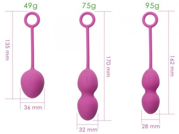 Комментарий: Данные шарики рекомендовали на тренинге, так как в этом наборе их три разных (для прокачки вагинальных мышц нужно периодически менять вес и размер шариков, чтобы не было привыкания), кроме того, со слов тренера, они имеют специальное антибактериальное покрытие, которого хватит надолго. Я не сразу решилась их купить. Приобрела сначала набор другого производителя, ощутимо дешевле и с 4 шариками разного веса, которые вставляются в силиконовую сцепку, но в процессе использования поняла неудобство: если шарики не идеально гладкие, да еще и с рельефом отдельной сцепки, то их невозможно идеально промыть, там могут скапливаться микробы. Еще один недостаток другого набора перед этим оказался в том, что хотя вес был и разный, размер всегда оставался один и тот же - для меня крупноват. Вот так опытным путем я все-таки пришла к покупке именно этого набора Svakom, хотя сначала посчитала, что дороговат. Но аналогов с такими характеристиками за эту цену на данный момент я не нашла.